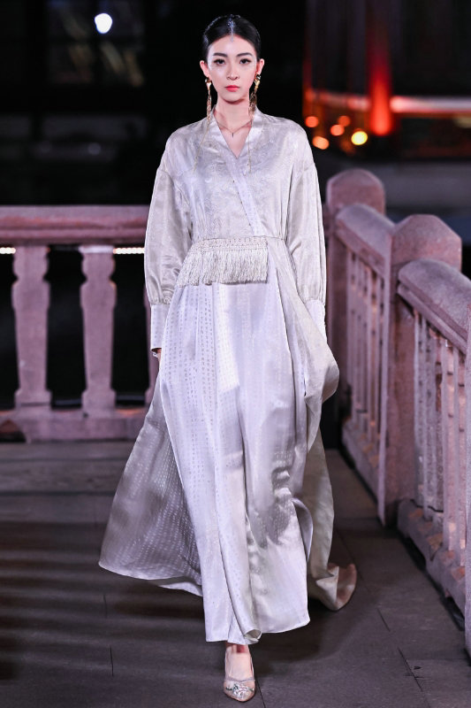 Models were dressed in clothing from local maker Jixiang Yijia, a brand launched in 2012 in Shanghai and that specializes in the delicate mixing of Chinese traditional and modern styles.